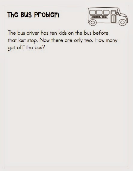 You can see above that we used math cubes to solve some simple bus story problems. To begin with I told some story problems about students getting on the bus and off the bus. I photocopied the template on yellow paper and laminated them.